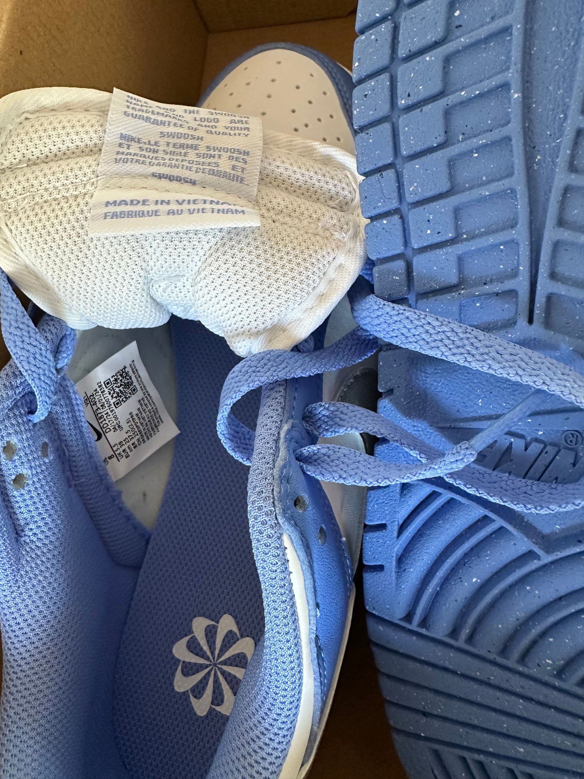 Stylish and comfortable Nike running shoes. Features a blue and white design. Never worn new in box.